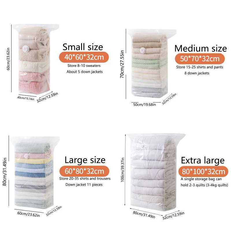 REUSABLE & WATERPROOF: Made from PA+PE Materials, durable and soft space basg vacuum storage bags can be reused for many times. Creating an airtight, waterproof and dust-proof storage state for your clothes and comforters