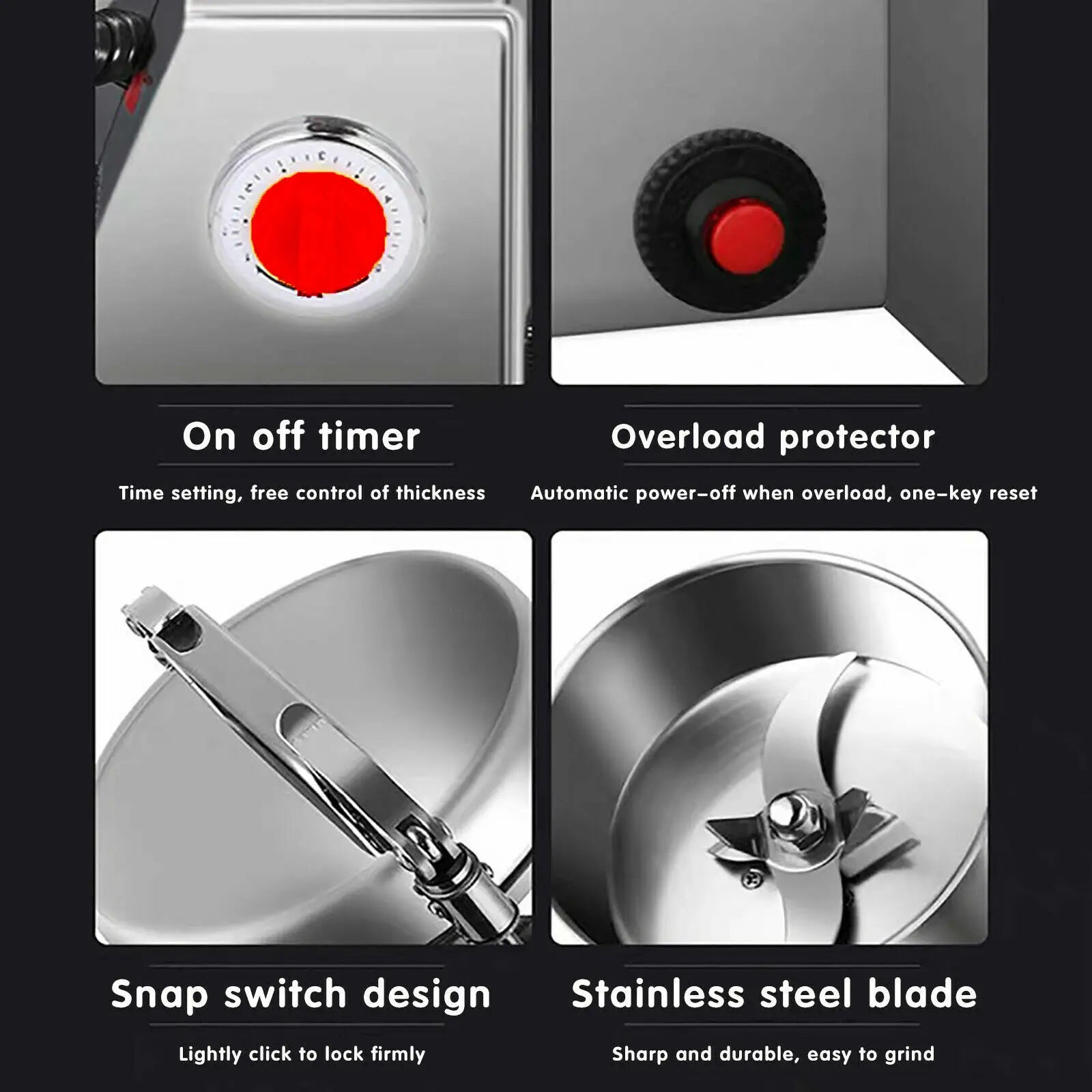 Designed with the overload protector button. When an overload occurs, it will automatically turn off and restarts easily by the button(better after 10 minutes). It can protect the motor from being burnt out, extended the life of the powder grinding machine.