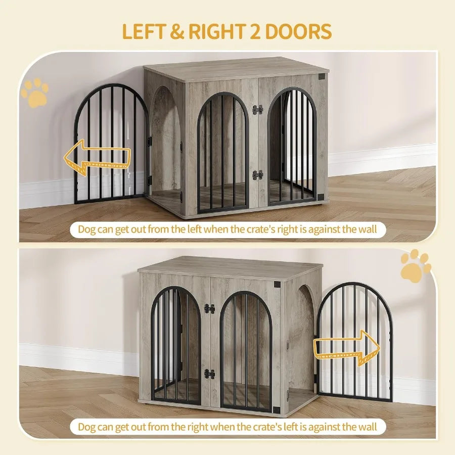 Elevate your space with a cozy, multifunctional wooden dog crate that blends seamlessly into your home.