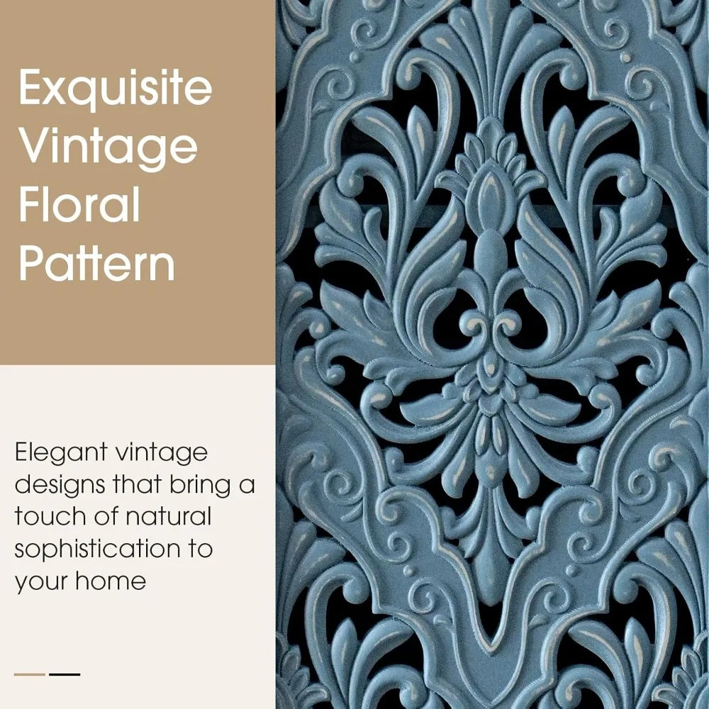 - Three internal compartments behind two carved grille doors: organize and display items while maintaining a decorative front with hand-distressed wood grain.