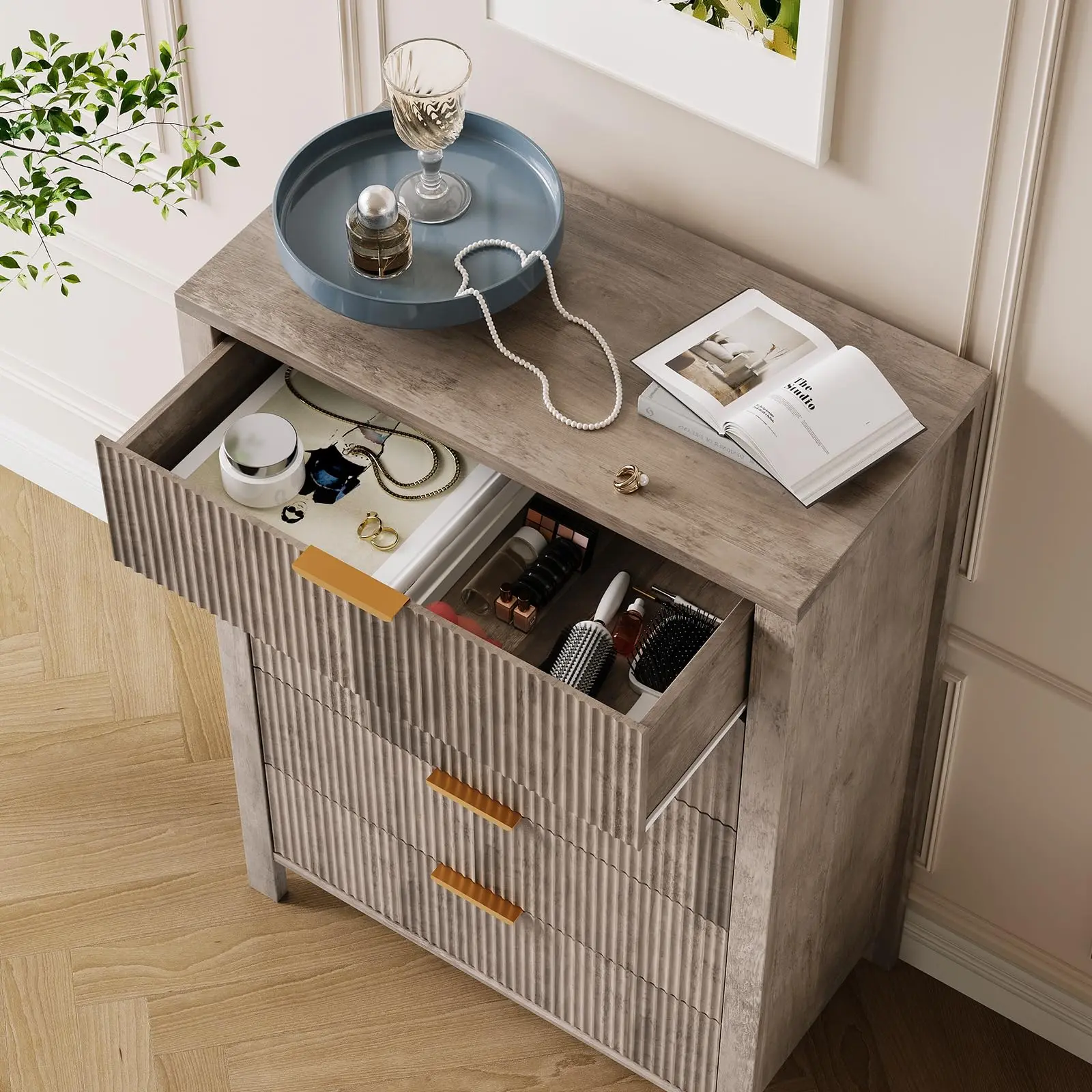 🛏️ Modern Wood Dresser for Bedroom – Crafted from high-quality MDF wood with stylish gold alloy handles. Trendy design blends with classic silhouette to match any decor, keeping your space neat and bright.