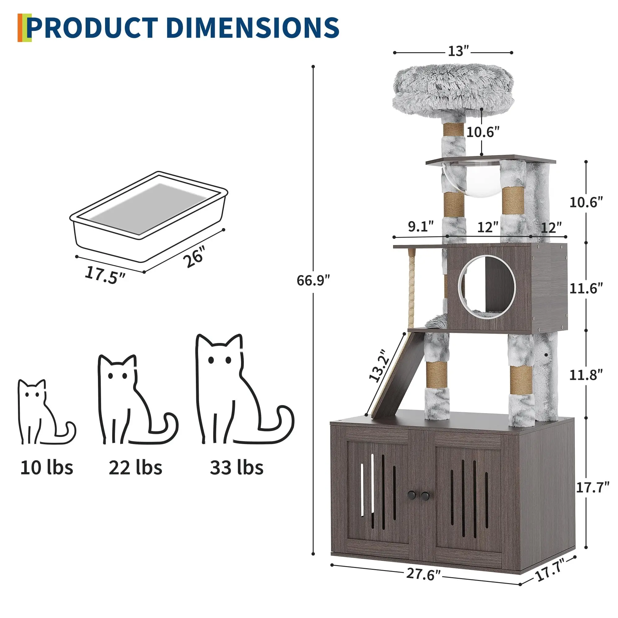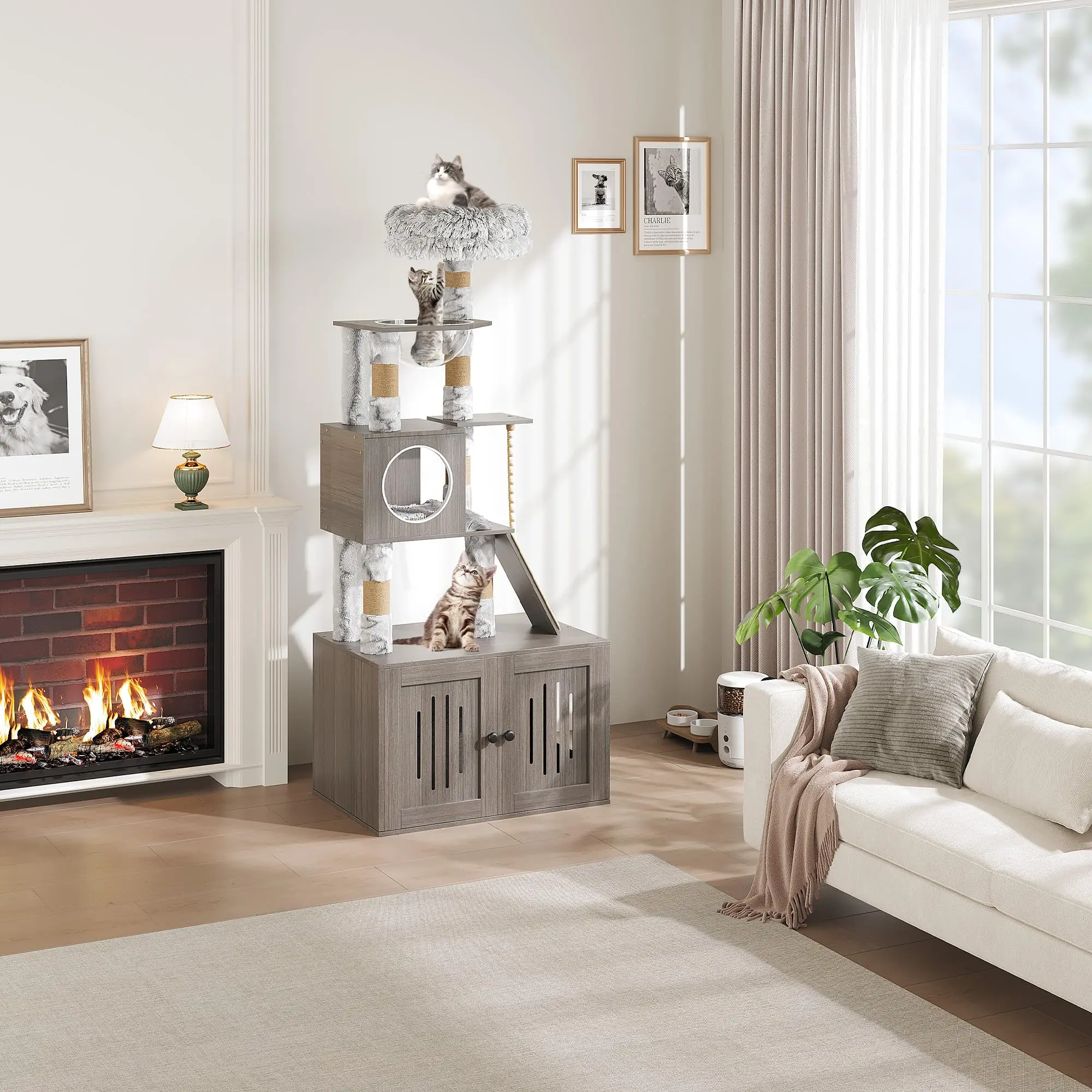 --- Integrated Storage Cabinet: Double-door base cabinet efficiently stores cat food, toys, and supplies, keeping your space tidy and organized.