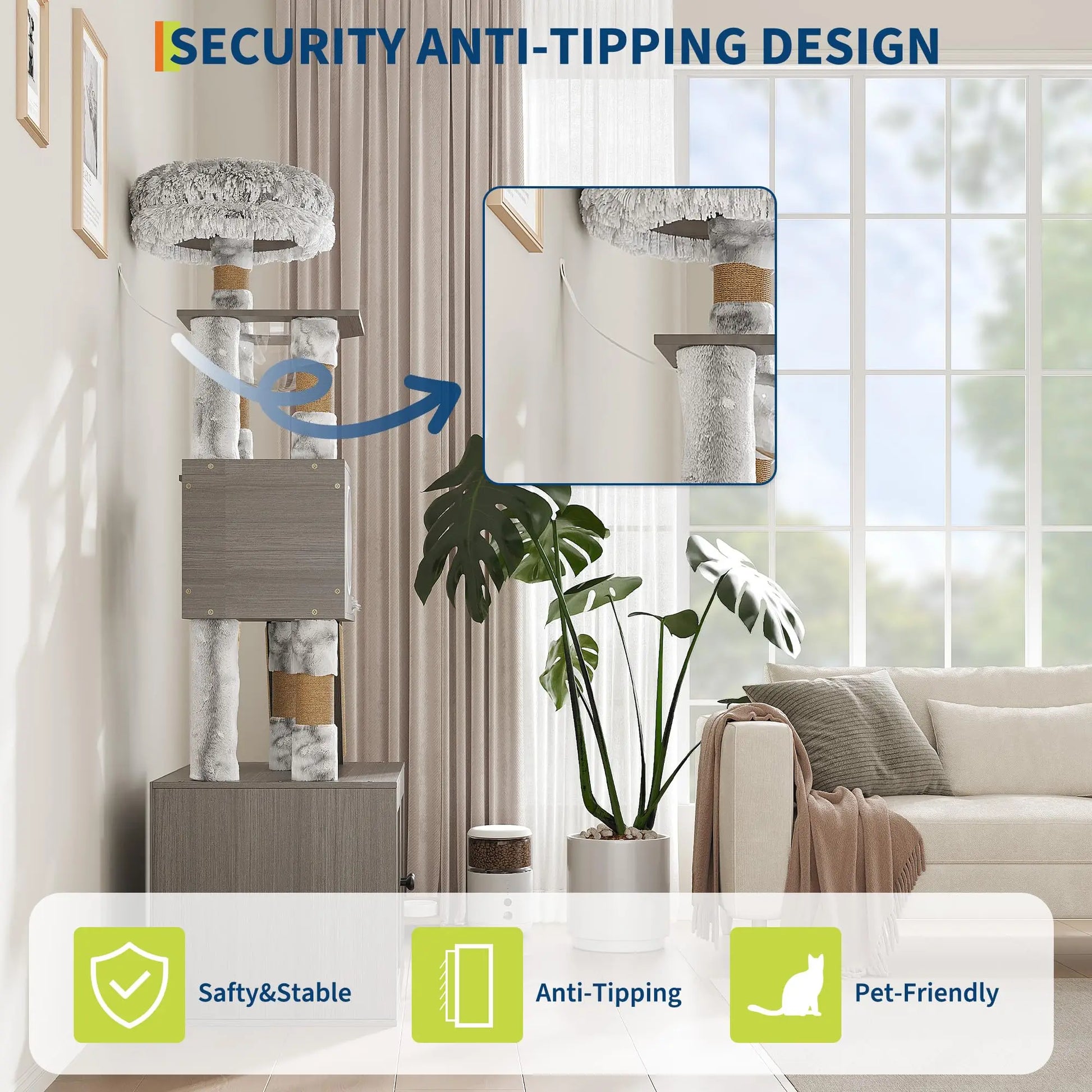 --- Sturdy & Safe Structure: Built from thick, high-density boards and a wide reinforced base, ensuring stability and safety for energetic cats during play.