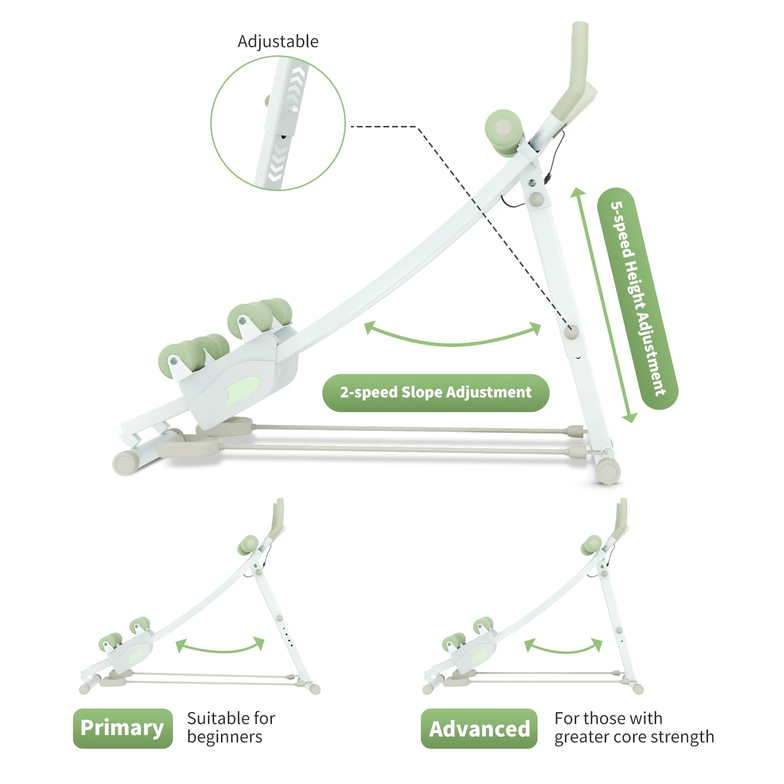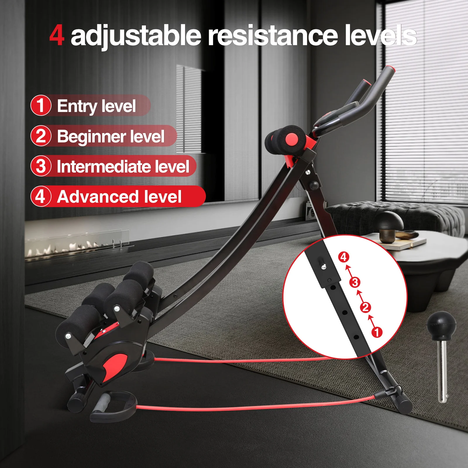 【Adjustable Resistance for All Levels】With 4 customizable resistance levels, it suits everyone from beginners to pros. As the ab machine’s incline increases, so does the challenge—perfect for continuous progression.