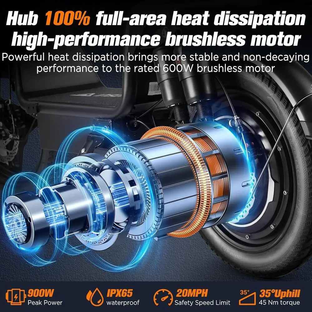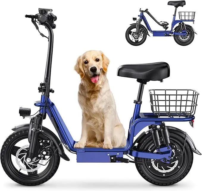 Enhanced Safety Features:Safety is paramount with the electric scooter. It features dual disc brakes for efficient and responsive stopping power. The low center of gravity from the seated position adds stability, ensuring a secure ride at all times.