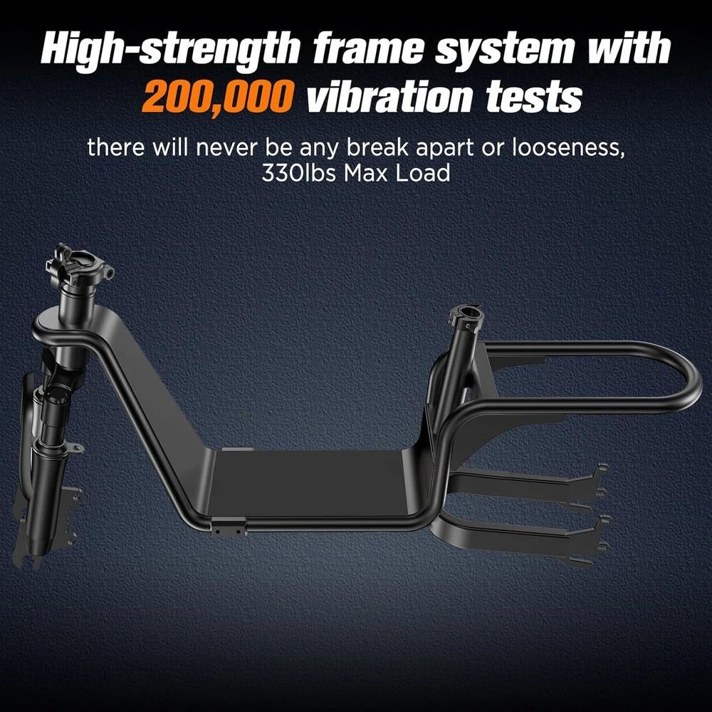 Robust and Durable Construction:Engineered to withstand rigorous use, this electric scooter has passed a 200,000 vibration test, ensuring a reliable ride. The high-strength frame supports up to 330 pounds, making it perfect for transporting various household items. With a powerful 900W peak power, it effortlessly handles everyday tasks.