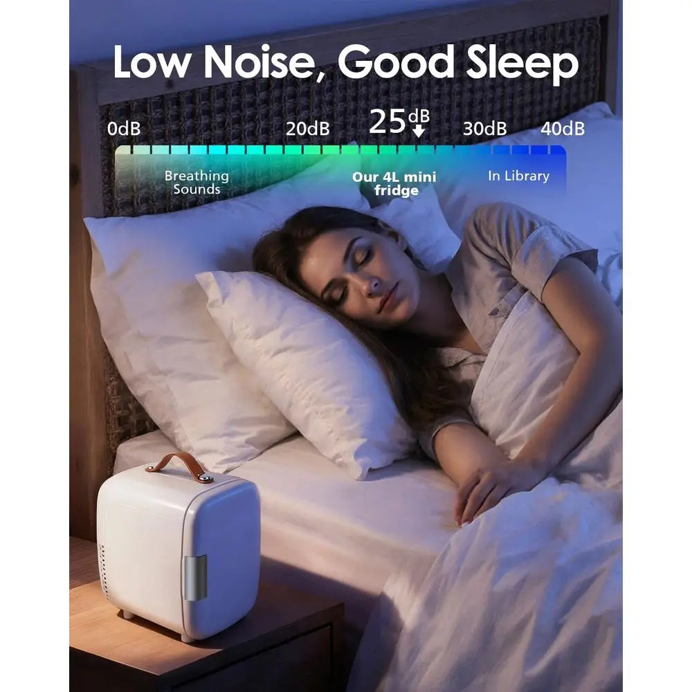 Enjoy ultra-quiet operation with this mini refrigerator for the bedroom, operating quietly at less than 25 dB, ensuring it won't disturb your work, sleep, or rest. It's ideal for light sleepers, studios, or noise-sensitive environments.