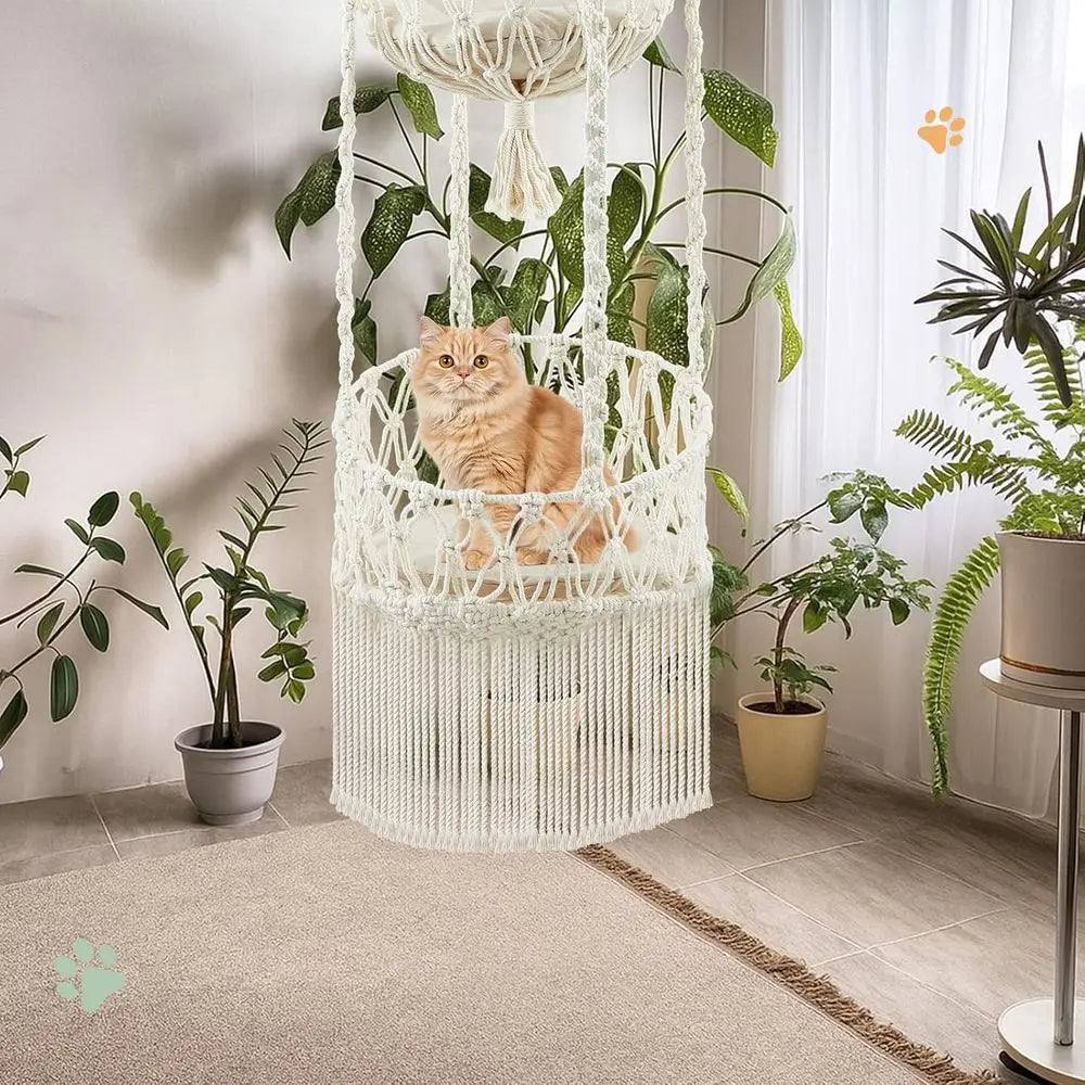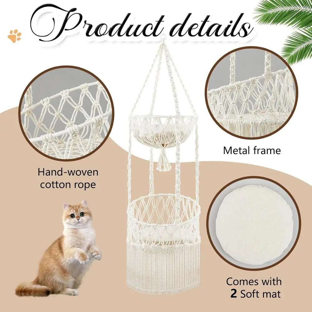 Style Meets Comfort: This uniquely designed double hanging cat bed is a stylish addition to any home. Handcrafted with 100% natural cotton rope, it's perfect for even the most discerning cats and their owners.