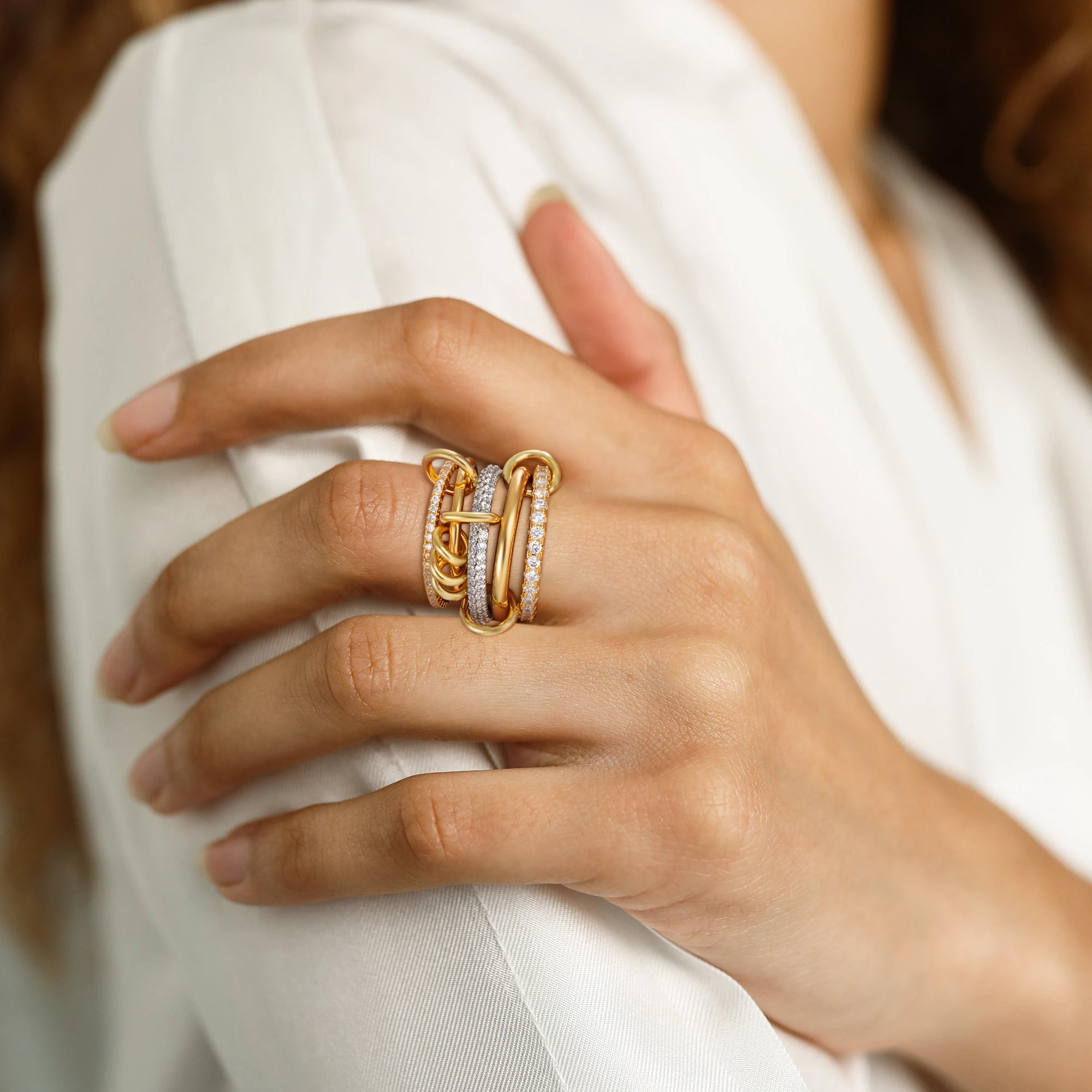 Fashion Luxury Cubic Zirconia Gold Plated Multilayer Connecting Rings Set for Women Mixed Color Stackable Finger Ring Jewelry fo