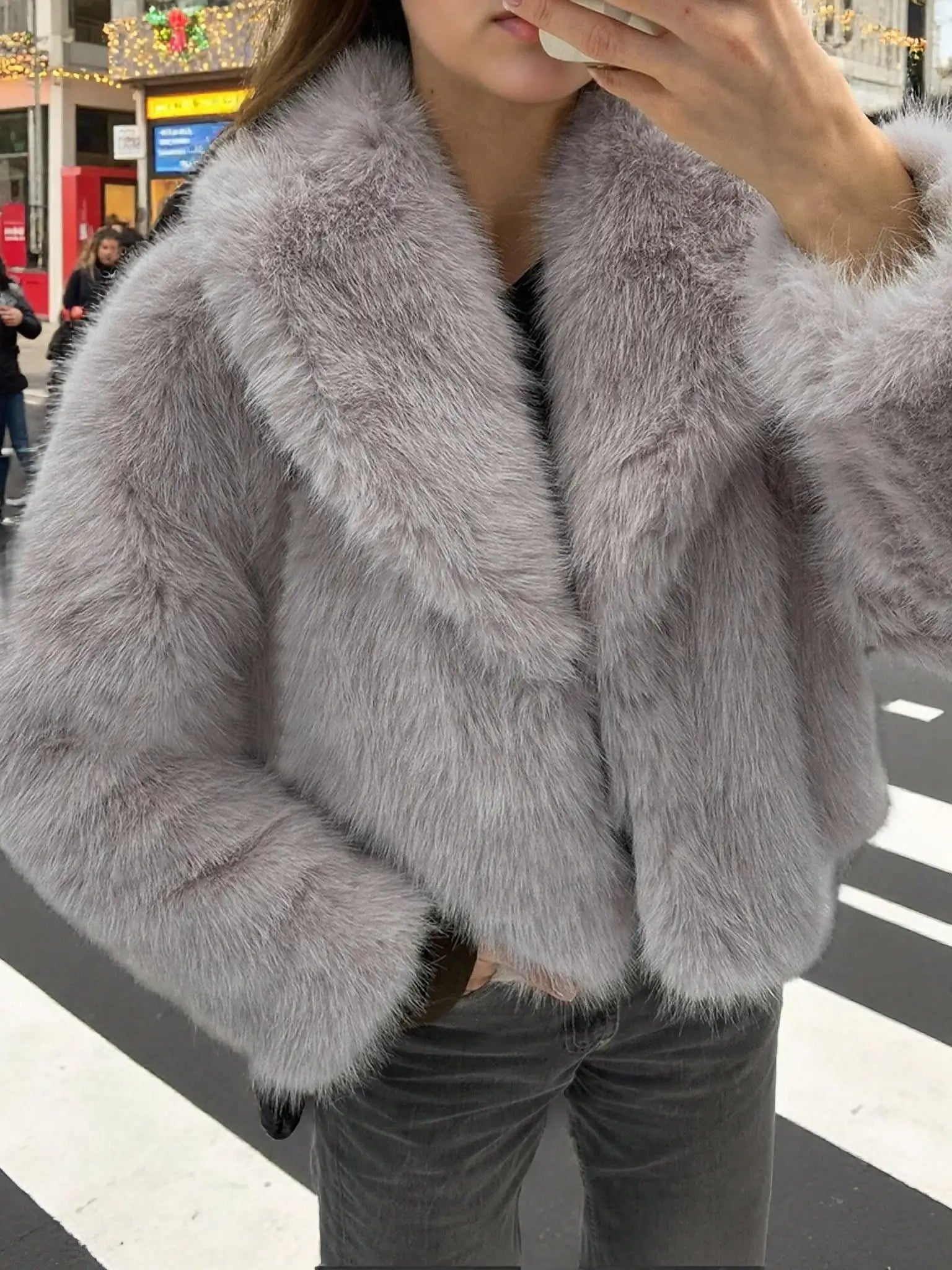Faux Fox Fur Short Jacket for Women, Winter Warm Cozy Coat with Plush Collar, Fashionable Street Style