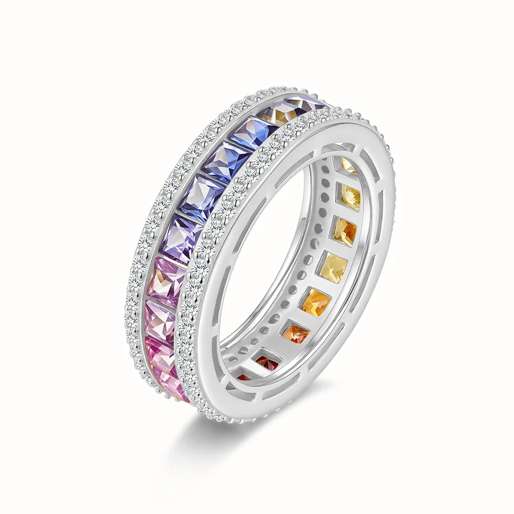 Multi-Color Moissanite Eternity Ring, 3*3MM D-Color Gemstone S925 Silver 18K Gold Plated, 5A Zircon Women Fashion Engagement Sta