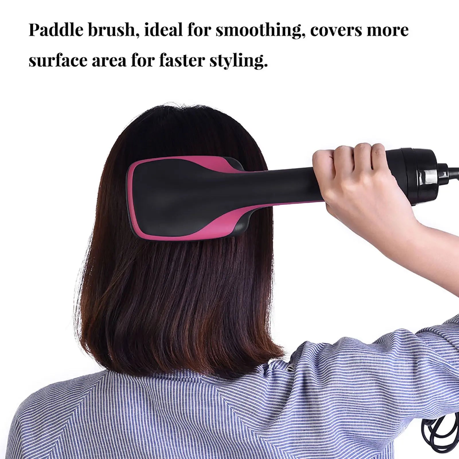 - 2-in-1 design dries your hair while smoothing in one step, cutting styling time by half and reducing heat exposure thanks to its wide paddle surface and controlled airflow.