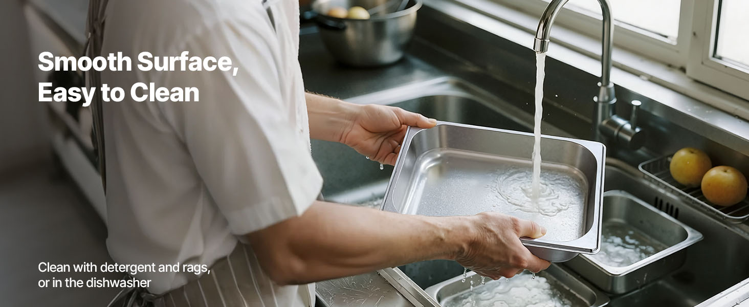 Effortless Maintenance: Designed with a sleek surface and spacious design, this steam table pan ensures hassle-free cleaning. You can easily clean it with a cloth and some detergent or place it in the dishwasher for quick and convenient upkeep.