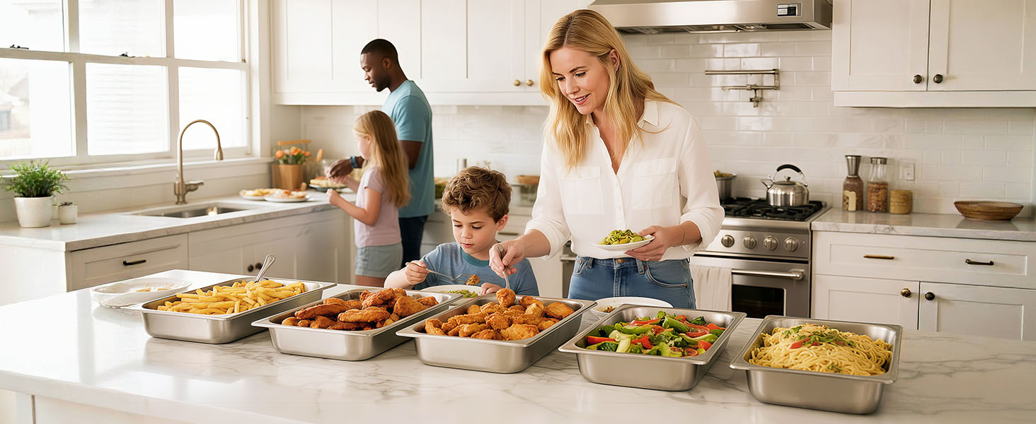 Practical Design: This stainless steel food pan is perfect for events like weddings, parties, or for use in restaurants and hotels. Whether you're cooking for a big family gathering or running a food service operation, this multi-pack set caters to various cooking and serving requirements.