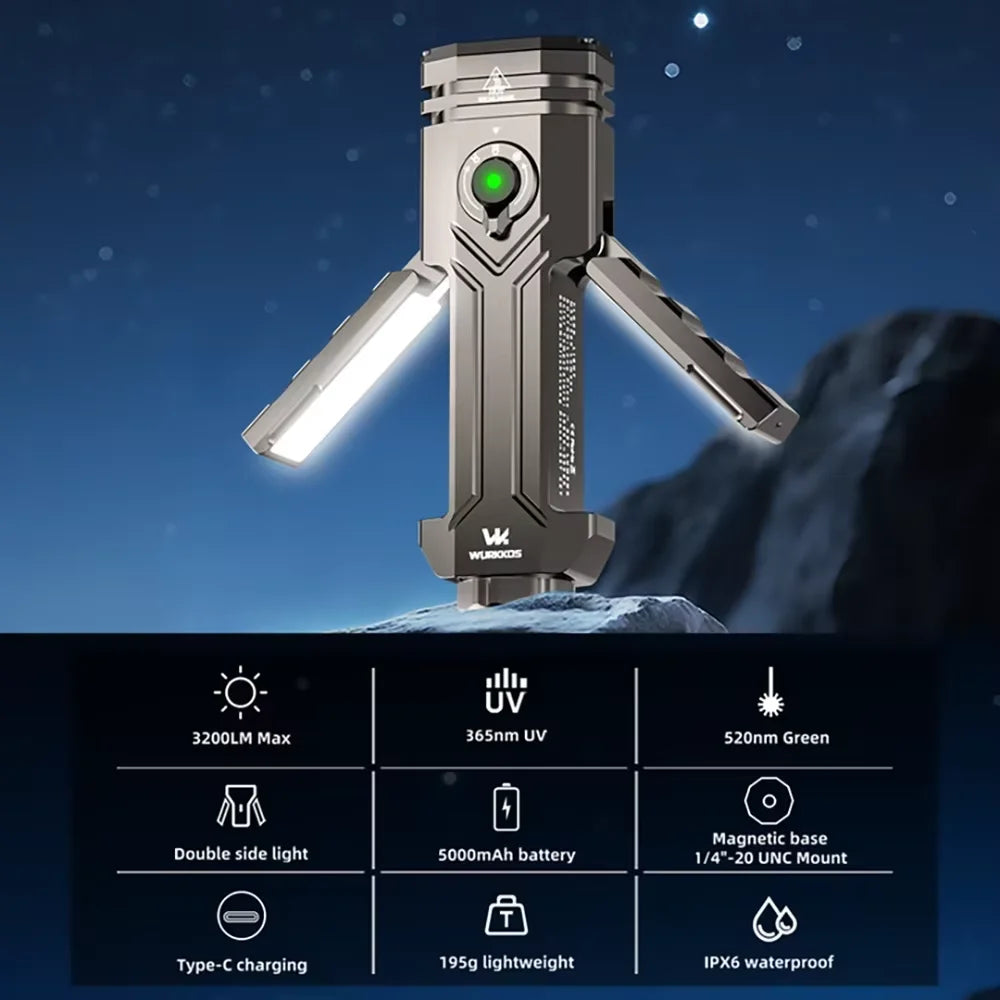 Wurkkos HD02 LED Camping Lamp Portable Outdoor Sports Fishing 3200 Lumens Hunting Hiking Searchlight with Rechargeable Battery